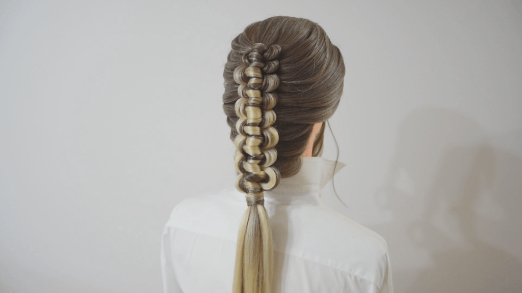 Combo di Nodi e coda bassa: Per le occasioni più formali possiamo combinare lo stile dei nodi, utilizzati nel macramè, e la coda creando una pettinatura originale e al passo con le mode del momento.