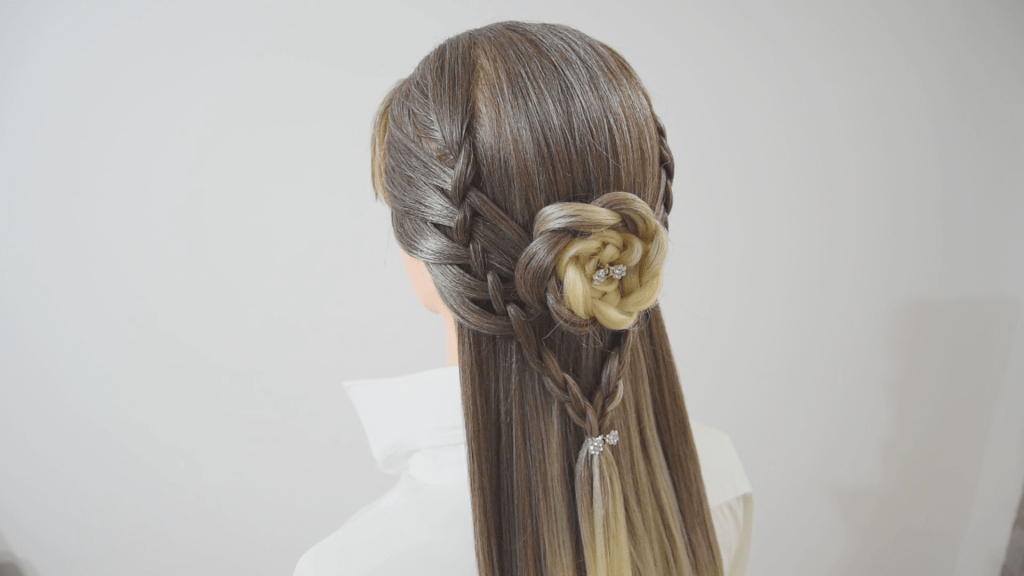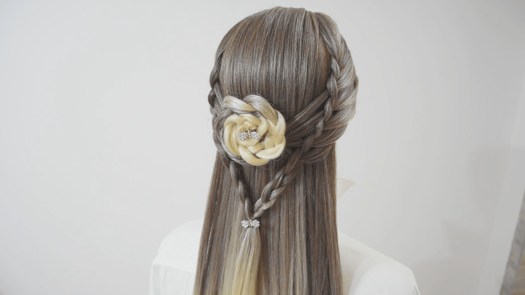 e seguendo i passaggi potrai fare questa bellissima acconciatura che è il risultato della combinazione di trecce che si intersecano creando una rosa.