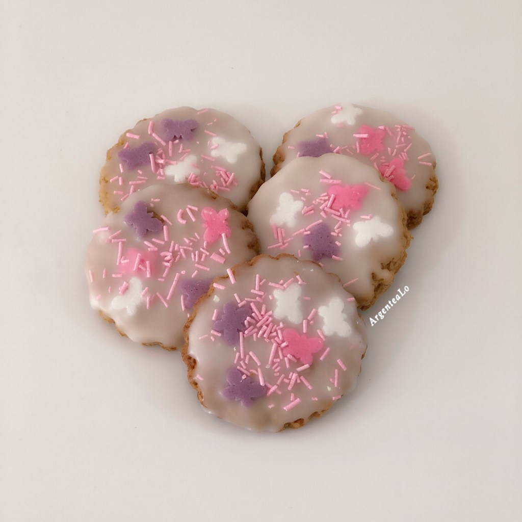 Quando i biscotti saranno freddi preparare la glassa e immergervi la parte superiore dei biscotti, disporli su un piano con carta forno e cospargere con codette di zucchero, fiori zuccherati o qualsiasi altro ingrediente che preferite. Lasciare raffreddare fino a che la glassa sarà indurita.