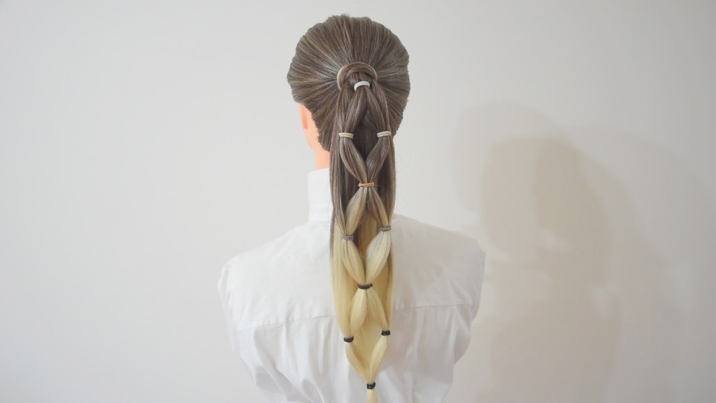 Partendo da una semplice coda con l’aiuto di elastici puoi creare una pettinatura singolare e fuori dal comune.