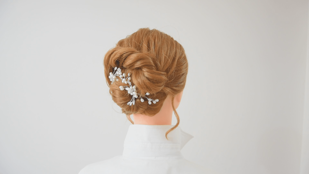 Semi Raccolto Elegante: realizzata con l’ausilio di elastici in silicone e impreziosita da un fermaglio con perle dona alla chioma un aspetto splendido e sofisticato.